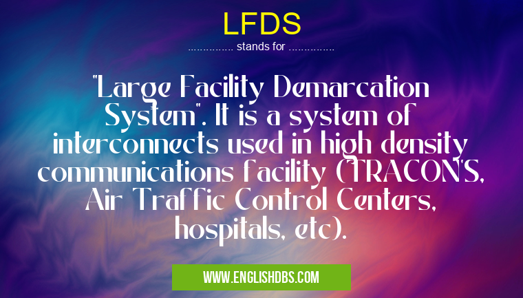 Full Form: "Large Facility Demarcation System". It is a system of interconnects used in high density communications facility (TRACON'S, Air Traffic Control Centers, hospitals, etc).