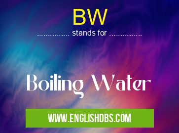 BW stands for Boiling Water and is used to refer to the process of heating water until it reaches its boiling point. Boiling water is a very common technique in food preparation, both for cooking and cleaning purposes. The temperature of boiling water depends on atmospheric pressure and typically ranges from 100°C (212°F) at sea level to around 93°C (199°F) when altitude is around 2,400 meters (8,000 feet). BW is also commonly used in medicine to sterilize equipment as well as instruments which cannot be autoclaved.