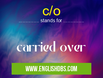 What does it stands for / c/o definition / c/o means?The definition of c/o is given above. Check out related information for more details. What does abbreviation mean c/o?The abbreviation for c/o is given above, so check out related information. What is the meaning of c/o?The meaning of the c/o is also explained earlier. So far, you might have gotten some idea about the acronym, abbreviation, or meaning of c/o. What does c/o mean? is explained earlier. You might also like some similar terms related to c/o to know more about it. This site contains various terms related to Research, Geography, IEEE, British Degree, Meteorology, Optics, Colleges, Societies, Hydrology, Academic Degrees, Trade Associations, Finance, Auditing, Agencies, Career, Institutes, Environmental, Governmental, Fire Departments, Commerce, Geriatric, Nursing, Veterinary, Disability, Cancer, Surgical, Transplantation, Prevention, Hospitals, Prescription and other terms. What is c/o?The acronym ACF could stand for more than one thing. To find out what it means, look up all of its possible meanings one by one. - What does C/O stands for in category BUSINESS