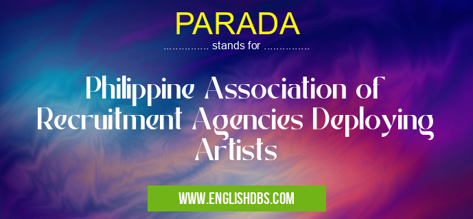 PARADA mostly used in an acronym Art in Category Community that means Philippine Association of Recruitment Agencies Deploying Artists