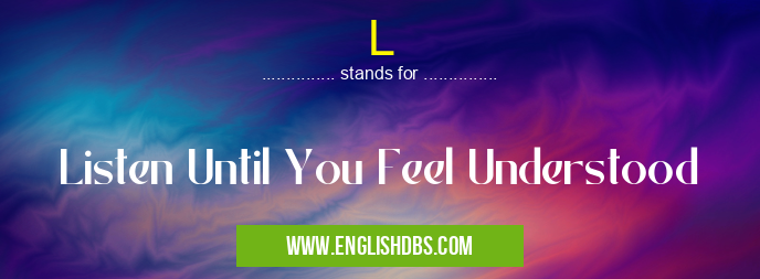 L mostly used in an acronym Unclassified in Category Miscellaneous that means Listen Until You Feel Understood