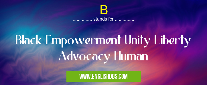 B mostly used in an acronym Unclassified in Category Miscellaneous that means Black Empowerment Unity Liberty Advocacy Human