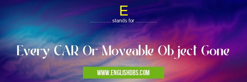 E mostly used in an acronym Unclassified in Category Miscellaneous that means Every CAR Or Moveable Object Gone