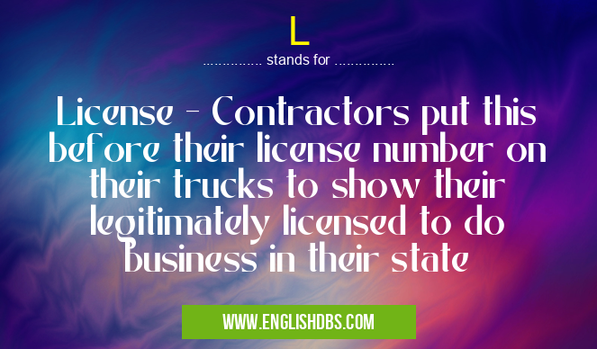 Full Form: License - Contractors put this before their license number on their trucks to show their legitimately licensed to do business in their state