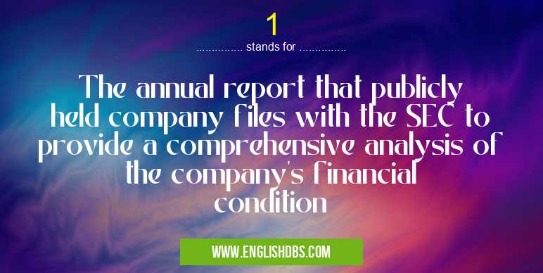 1 mostly used in an acronym Accounting in Category Business that means The annual report that publicly held company files with the SEC to provide a comprehensive analysis of the company's financial condition