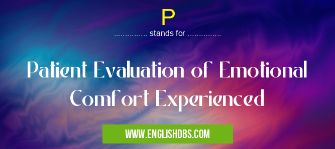 P mostly used in an acronym Unclassified in Category Miscellaneous that means Patient Evaluation of Emotional Comfort Experienced