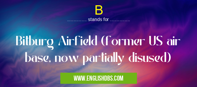 B mostly used in an acronym Aircraft & Aviation in Category Miscellaneous that means Bitburg Airfield (former US air base, now partially disused)