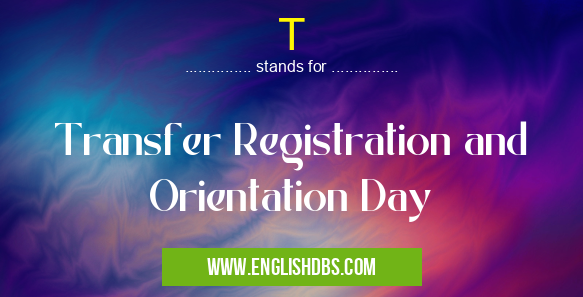 T mostly used in an acronym Unclassified in Category Miscellaneous that means Transfer Registration and Orientation Day