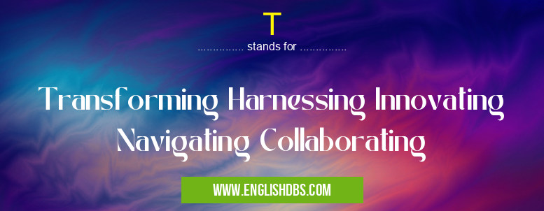 T mostly used in an acronym Unclassified in Category Miscellaneous that means Transforming Harnessing Innovating Navigating Collaborating