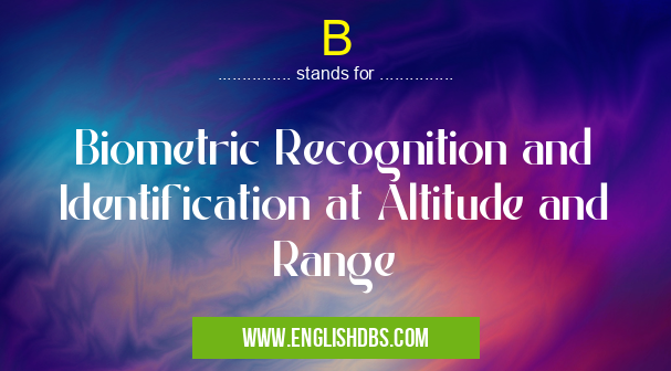 B mostly used in an acronym Unclassified in Category Miscellaneous that means Biometric Recognition and Identification at Altitude and Range
