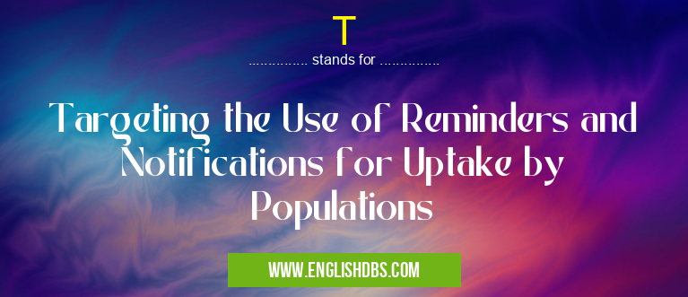T mostly used in an acronym Unclassified in Category Miscellaneous that means Targeting the Use of Reminders and Notifications for Uptake by Populations