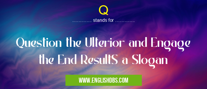 What is the meaning of the slogan "Q = Question the Ulterior and Engage the End ResultS"?