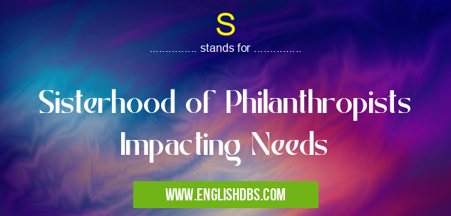 S mostly used in an acronym Unclassified in Category Miscellaneous that means Sisterhood of Philanthropists Impacting Needs