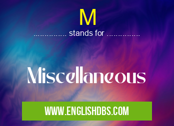 What does it stands for / M definition / M means?The definition of M is given above. Check out related information for more details. What does abbreviation mean M?The abbreviation for M is given above, so check out related information. What is the meaning of M?The meaning of the M is also explained earlier. So far, you might have gotten some idea about the acronym, abbreviation, or meaning of M. What does M mean? is explained earlier. You might also like some similar terms related to M to know more about it. This site contains various terms related to Research, Geography, IEEE, British Degree, Meteorology, Optics, Colleges, Societies, Hydrology, Academic Degrees, Trade Associations, Finance, Auditing, Agencies, Career, Institutes, Environmental, Governmental, Fire Departments, Commerce, Geriatric, Nursing, Veterinary, Disability, Cancer, Surgical, Transplantation, Prevention, Hospitals, Prescription and other terms. What is M?The acronym ACF could stand for more than one thing. To find out what it means, look up all of its possible meanings one by one. - What does M stands for in category MISCELLANEOUS