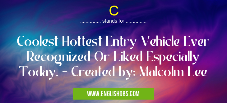 Full Form: Coolest Hottest Entry Vehicle Ever Recognized Or Liked Especially Today. - Created by: Malcolm Lee