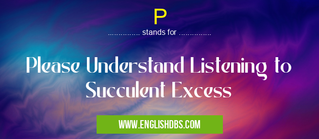 P mostly used in an acronym Unclassified in Category Miscellaneous that means Please Understand Listening to Succulent Excess