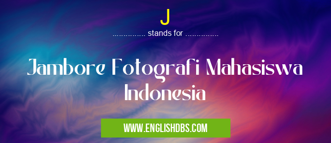 J mostly used in an acronym Unclassified in Category Miscellaneous that means Jambore Fotografi Mahasiswa Indonesia