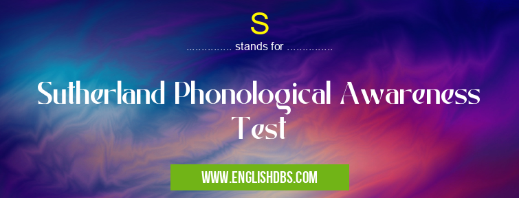 S mostly used in an acronym Unclassified in Category Miscellaneous that means Sutherland Phonological Awareness Test