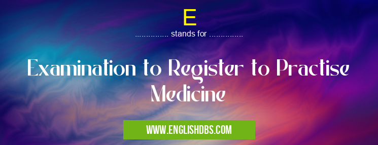 E mostly used in an acronym Medical in Category Medical that means Examination to Register to Practise Medicine