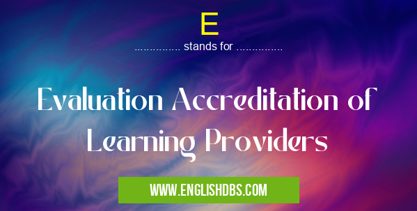 E mostly used in an acronym Educational in Category Community that means Evaluation Accreditation of Learning Providers
