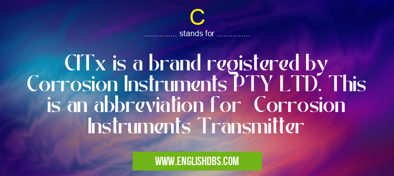 Full Form: CITx is a brand registered by Corrosion Instruments PTY LTD. This is an abbreviation for Corrosion Instruments Transmitter