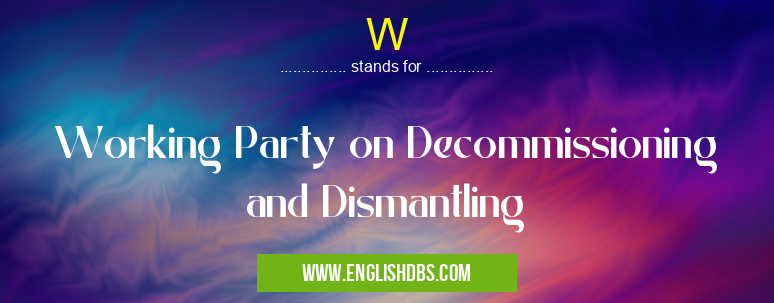W mostly used in an acronym Unclassified in Category Miscellaneous that means Working Party on Decommissioning and Dismantling