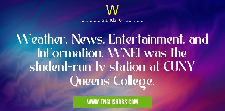 Full Form: Weather, News, Entertainment, and Information. WNEI was the student-run tv station at CUNY Queens College.