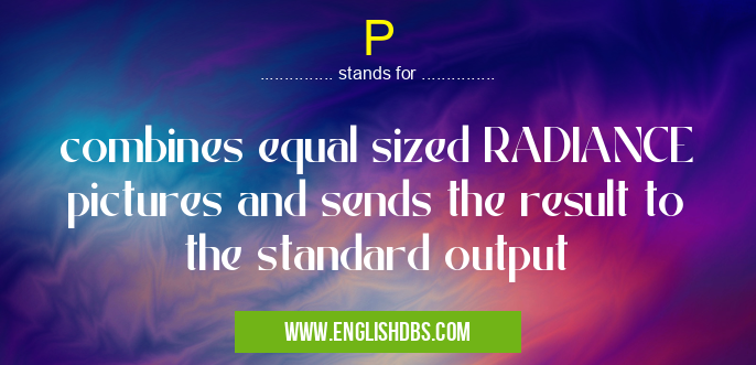 P mostly used in an acronym Unclassified in Category Miscellaneous that means combines equal sized RADIANCE pictures and sends the result to the standard output