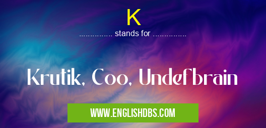 K mostly used in an acronym Names and Nicknames in Category Miscellaneous that means Krutik, Coo, Undefbrain