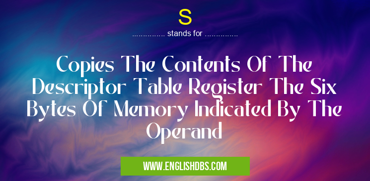 S mostly used in an acronym Unclassified in Category Miscellaneous that means Copies The Contents Of The Descriptor Table Register The Six Bytes Of Memory Indicated By The Operand