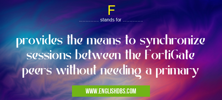 F mostly used in an acronym Unclassified in Category Miscellaneous that means provides the means to synchronize sessions between the FortiGate peers without needing a primary