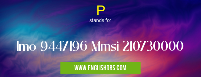 P mostly used in an acronym Unclassified in Category Miscellaneous that means Imo 9447196 Mmsi 210730000