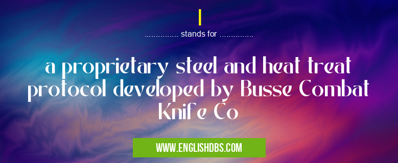 I mostly used in an acronym Unclassified in Category Miscellaneous that means a proprietary steel and heat treat protocol developed by Busse Combat Knife Co