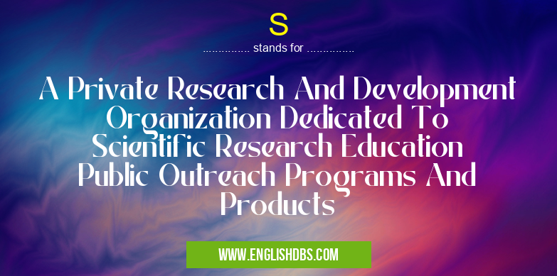 S mostly used in an acronym Development in Category Community that means A Private Research And Development Organization Dedicated To Scientific Research Education Public Outreach Programs And Products