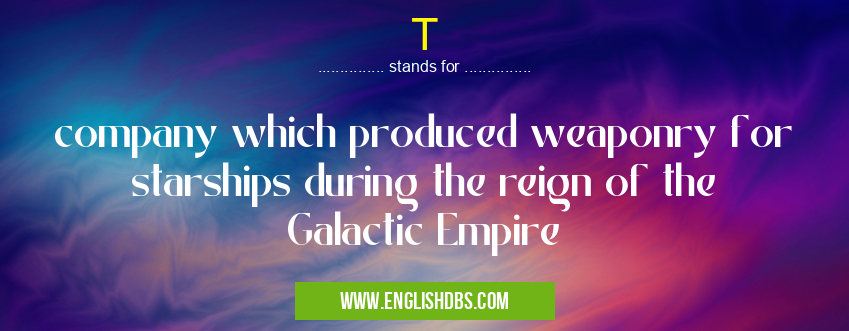 T mostly used in an acronym Companies & Firms in Category Business that means company which produced weaponry for starships during the reign of the Galactic Empire