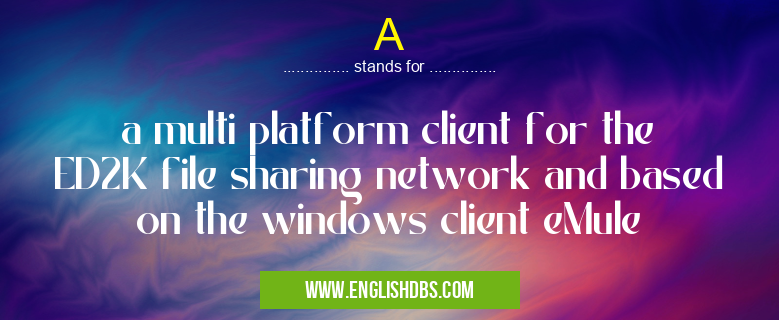 A mostly used in an acronym Unclassified in Category Miscellaneous that means a multi platform client for the ED2K file sharing network and based on the windows client eMule