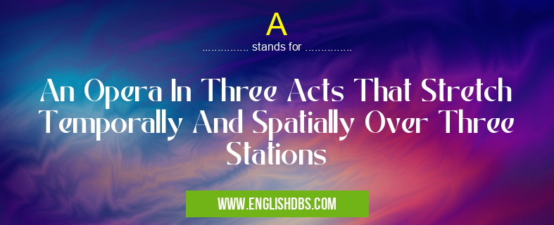 A mostly used in an acronym Unclassified in Category Miscellaneous that means An Opera In Three Acts That Stretch Temporally And Spatially Over Three Stations
