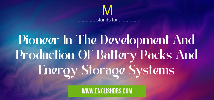 M mostly used in an acronym Energy in Category Governmental that means Pioneer In The Development And Production Of Battery Packs And Energy Storage Systems