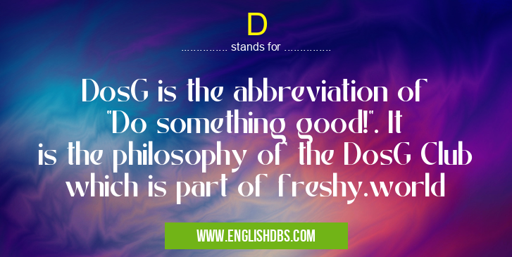 Full Form: DosG is the abbreviation of "Do something good!". It is the philosophy of the DosG Club which is part of freshy.world