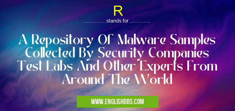 R mostly used in an acronym Unclassified in Category Miscellaneous that means A Repository Of Malware Samples Collected By Security Companies Test Labs And Other Experts From Around The World