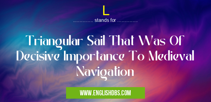 L mostly used in an acronym Unclassified in Category Miscellaneous that means Triangular Sail That Was Of Decisive Importance To Medieval Navigation