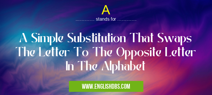 A mostly used in an acronym Unclassified in Category Miscellaneous that means A Simple Substitution That Swaps The Letter To The Opposite Letter In The Alphabet