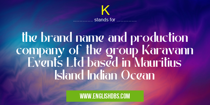 K mostly used in an acronym Companies & Firms in Category Business that means the brand name and production company of the group Karavann Events Ltd based in Mauritius Island Indian Ocean