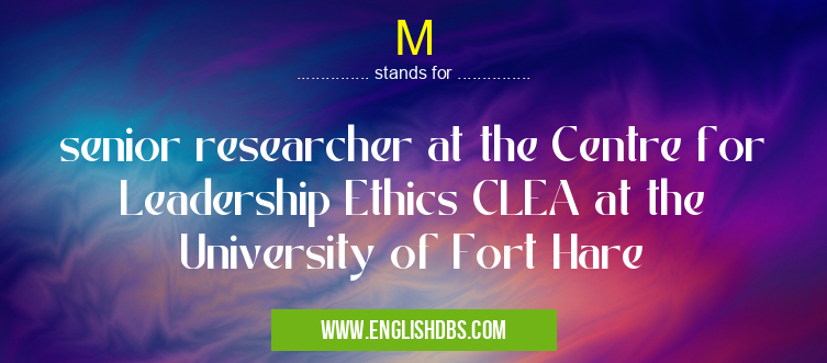 M mostly used in an acronym Leadership in Category Community that means senior researcher at the Centre for Leadership Ethics CLEA at the University of Fort Hare