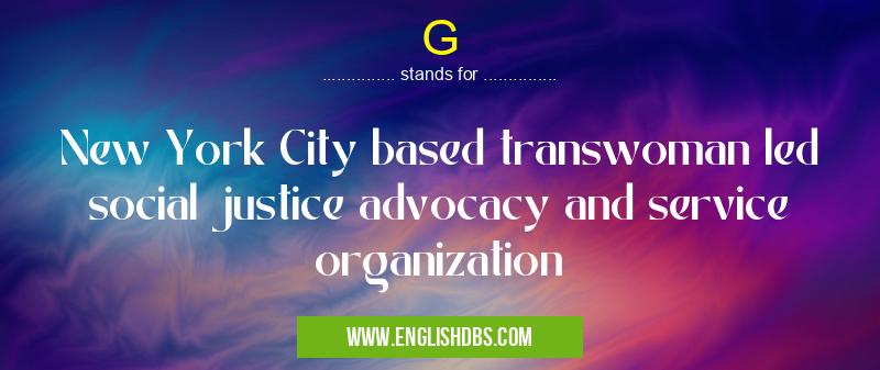 G mostly used in an acronym Law & Legal in Category Governmental that means New York City based transwoman led social justice advocacy and service organization