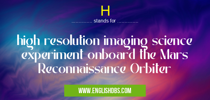 H mostly used in an acronym Academic & Science in Category Academic & Science that means high resolution imaging science experiment onboard the Mars Reconnaissance Orbiter