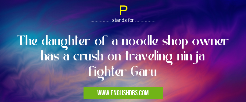P mostly used in an acronym Unclassified in Category Miscellaneous that means The daughter of a noodle shop owner has a crush on traveling ninja fighter Garu