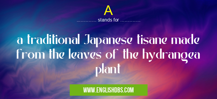 A mostly used in an acronym Unclassified in Category Miscellaneous that means a traditional Japanese tisane made from the leaves of the hydrangea plant