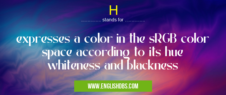 H mostly used in an acronym Unclassified in Category Miscellaneous that means expresses a color in the sRGB color space according to its hue whiteness and blackness
