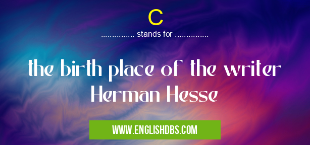 C mostly used in an acronym Unclassified in Category Miscellaneous that means the birth place of the writer Herman Hesse